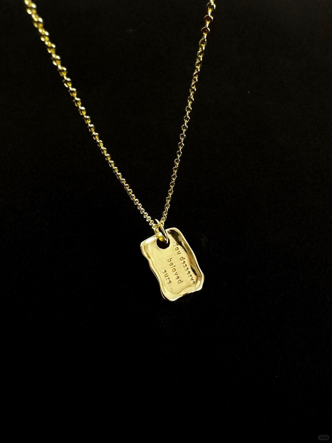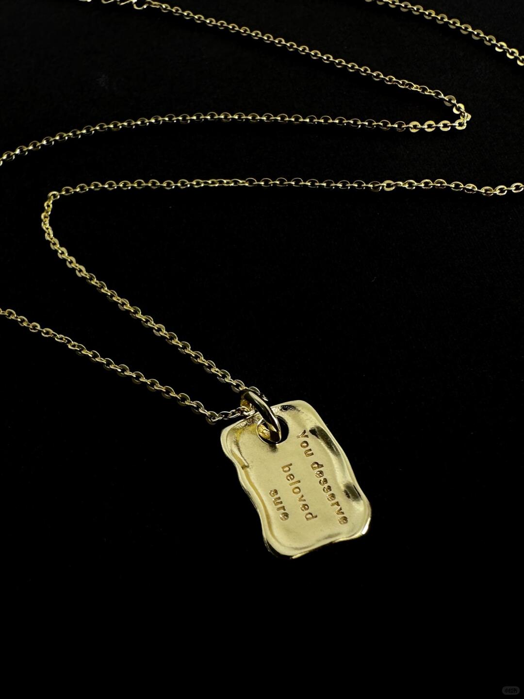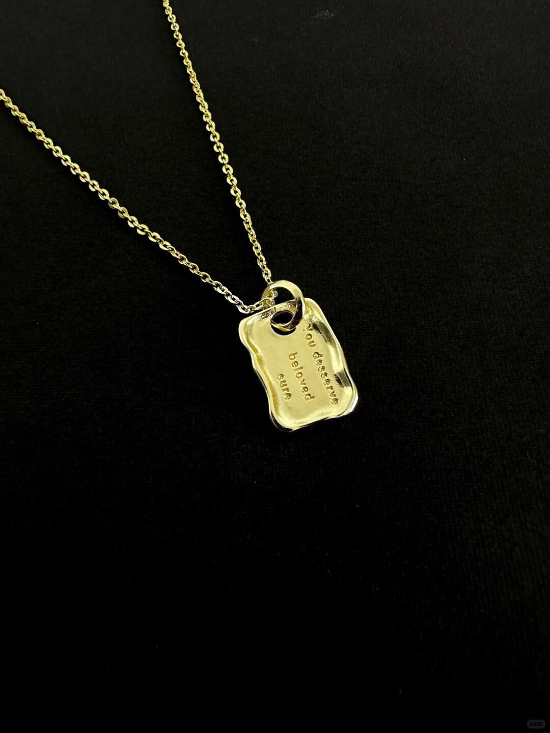 - Pendant: Engraved tag charm with the words “You deserve be loved sure,” symbolizing self-worth